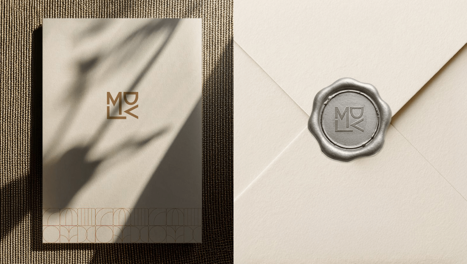 A major focus of the refresh was the creation of a new logomark — a bold, interlocking monogram built from the letters L, M, D, and V. The final symbol captures the geometric elegance of Art Deco while feeling distinctly modern. Its construction gives it a sculptural quality, making it work beautifully in foil, embossing and other premium production techniques.